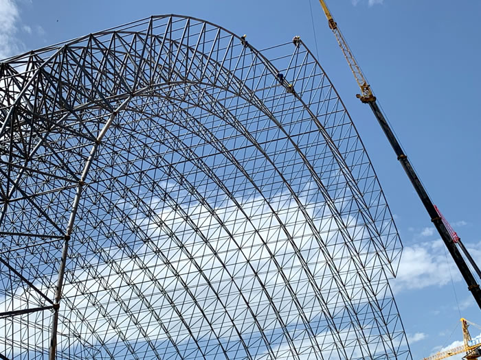 (2)网架加工前应对现场尺寸进行复测,确认无误后方可进行加工、安装;网架制作、运输、安装应遵守《空间网格结构技术规程》JGJ7-2010、《钢网架莱芜螺栓球节点》JG/T 10-2009、《钢网架莱芜螺栓球节点用高强度螺栓》 GB/T 16939-2016、《莱芜钢结构莱芜工程莱芜施工规范》 GB50755-2012、《莱芜钢结构莱芜工程施工质量验收标准》 GB50205-2020。